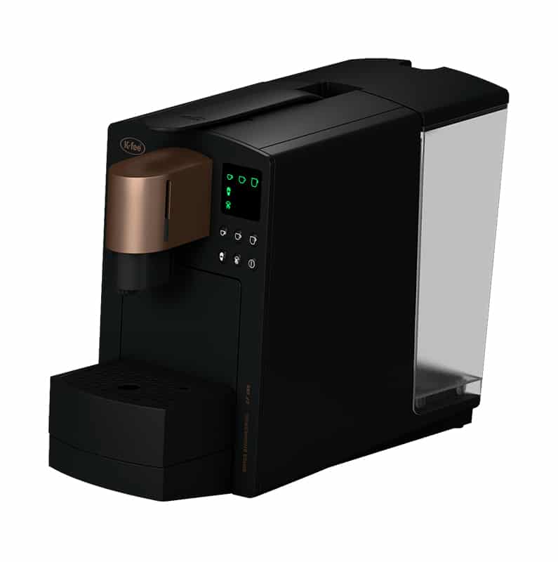 The K-Fee Grande is the ideal capsule coffee machine for small offices, studios, and hotel rooms. With a 3.5L water tank and four programmable drink sizes, it offers a wide range of beverages, including espresso, cappuccino, tea, and hot chocolate. Simple to use—just insert a capsule, select your drink size, and it's ready in under 20 seconds. Maintenance is hassle-free with no grinder or milk frother to clean, and the LED screen provides automatic cleaning and descaling reminders to keep the machine in top condition.